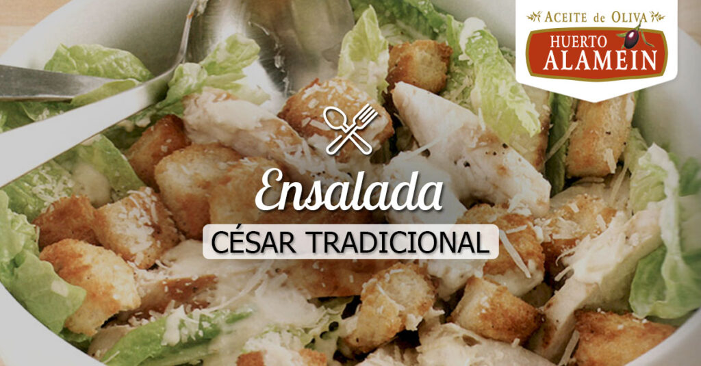 Servir la lechuga junto con los crutones de pan, queso parmesano y un par de anchoas. Si se desea agregar más salsa. La ensalada césar tradicional es la base para otras ensaladas como la ensalada césar con pollo o con camarones.